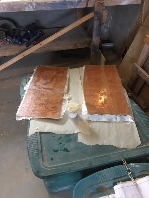 Fiberglassing companionway doors. Raema, my wife, helped me to do a little.  :)